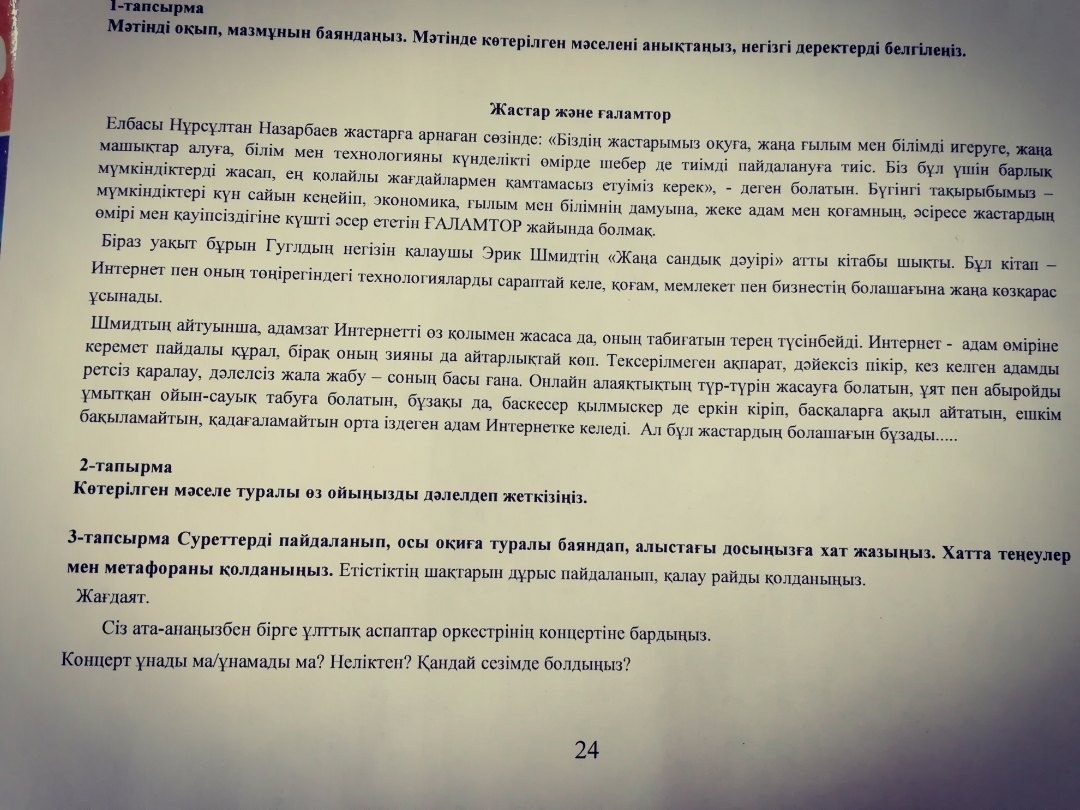 Вот Призедент Республики Казакстан Нурсултан Назырбаев рассказал о молодых людях Наша молодёжь должна использовать знания и технологии что бы хорошо использовать знания в технологии что бы изучить новые навыки в изучении новых наук и знаний и мы должны сделать всё возможное что бы обеспечить нам всё самое удобное в использовании науки и техники.Перевела не весь только до предпоследней строчки.
