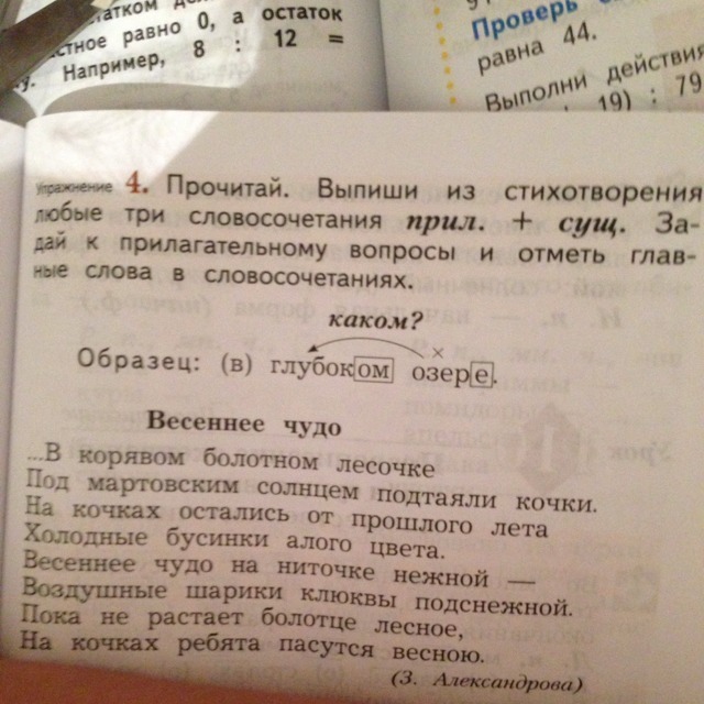 Прочитай выпиши из стихо отворённая любые три словосочетания прил + сущ задай к прилогательнуму вопросы и отметь главные слова в словосочетанияхх