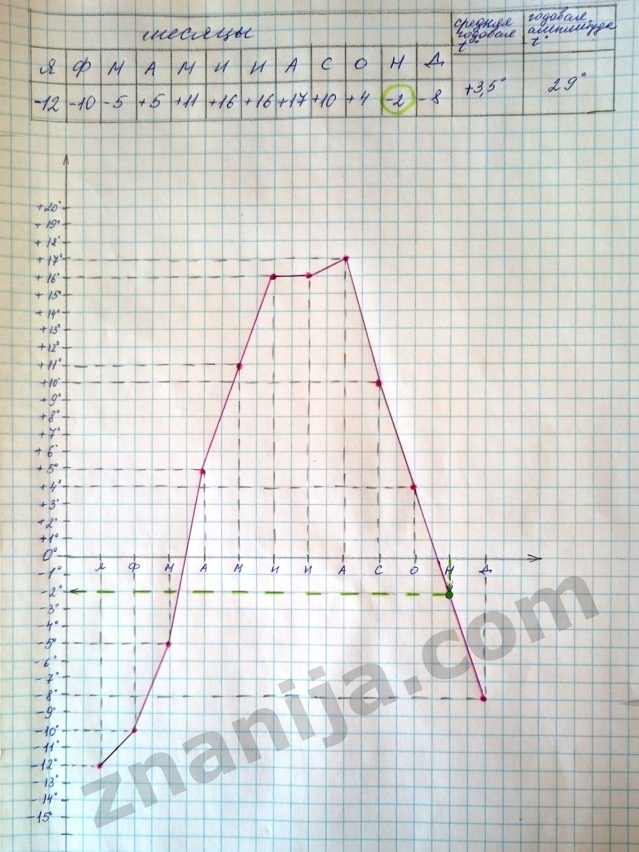 Этим значением является разница между самой высокой и самой низкой температурой в году. При этом важно, что мы отнимаем от самой высокой (+17°С) самую низкую (-12°С):