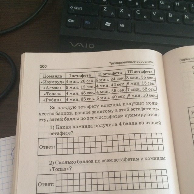 Помогите пожалуйста! В нескольких эстафетах, которые проводились в школах, команды показали следующие результаты: (смотреть на фото)