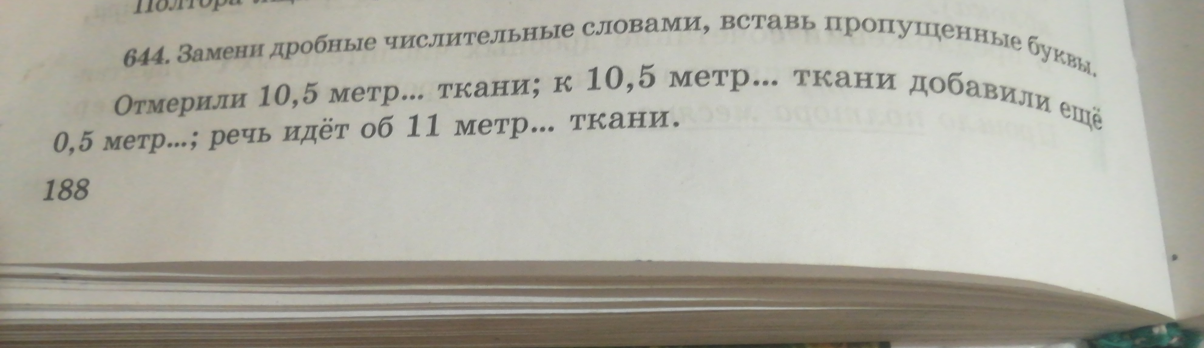 отмеряли 10.5 метров ткани, к 10.5 метрам ткани добавили 0.5 метров, речь идёт об 11 метрах ткани .