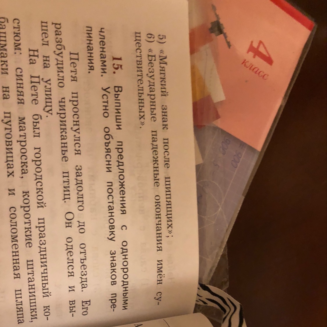 синяя матроса, короткие штанишки, башмаки на пуговица и соломенная шляпа. Это однородные члены