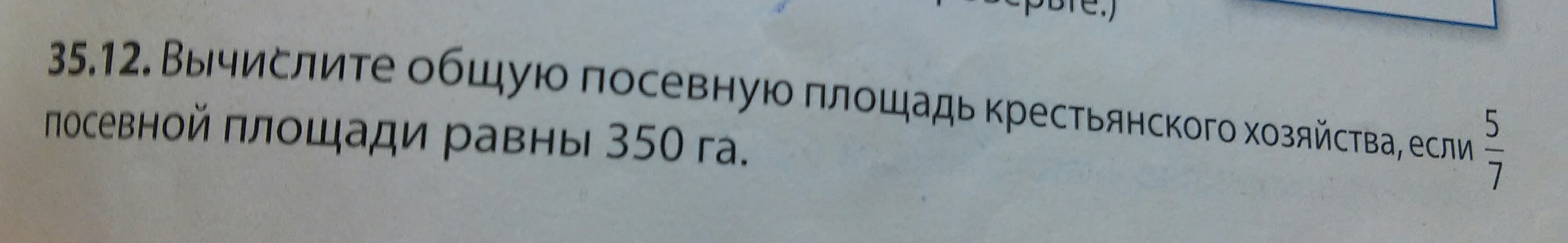 так как 350га-это 5/7 всей площади, то тебе нужно разделить на кол-во заполненных частей (5) и умножить на общее кол-во частей(7),