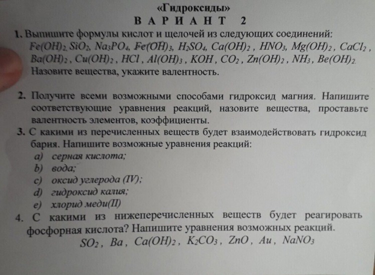 KOH(1)гидроксид бария