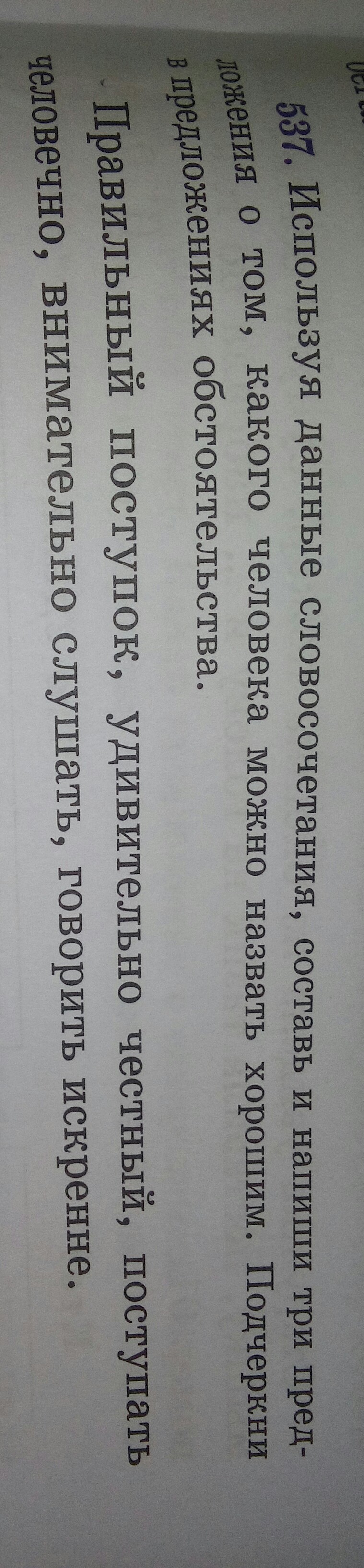 Используя данные словосочетания,составь и напиши три предложения о том,какого человека можно назвать хорошим.Подчеркни в предложениях обстоятельства.