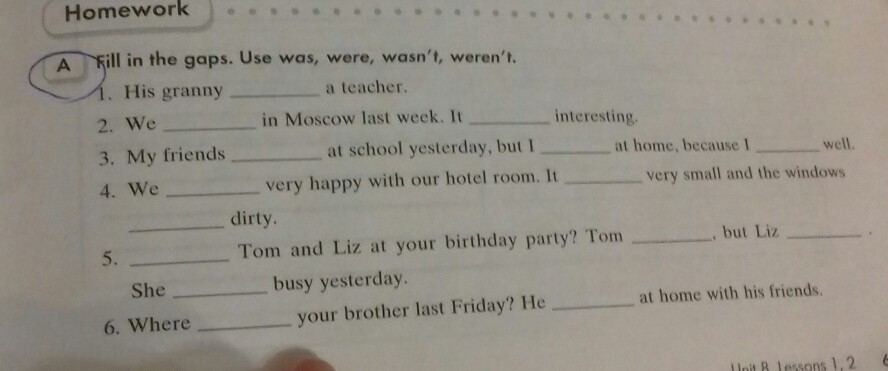 fill the gaps. Use was, were, wasn't, weren't. очень надо помогите пожалуйста!! будьте добрыми людьми!