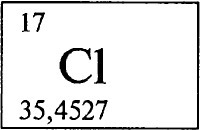 на таблице менделеева его относительная масса-35,4527. иногда она округляется до 35,453 или 35,45