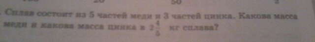 спаов состоит из 5 честей меди 3 частей цинка. какова маса меди икакова маса цынка в 2.45