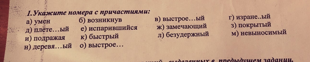 все кроме н к о м остальные причастия