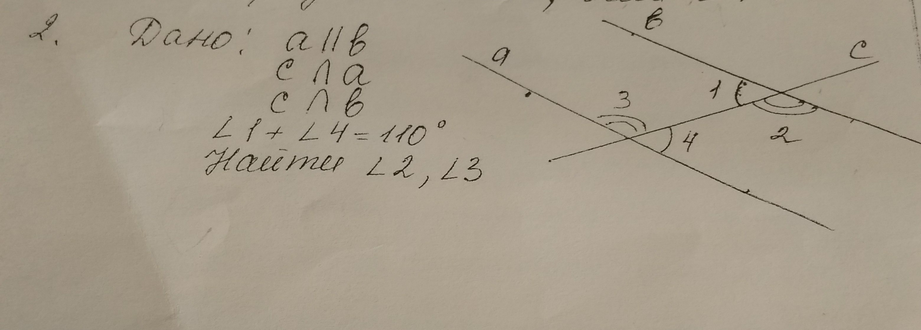 Т. к. углы 1 и 4 секущие, они равны => 110° ÷ 2 =55° - угол 1; угол 4.