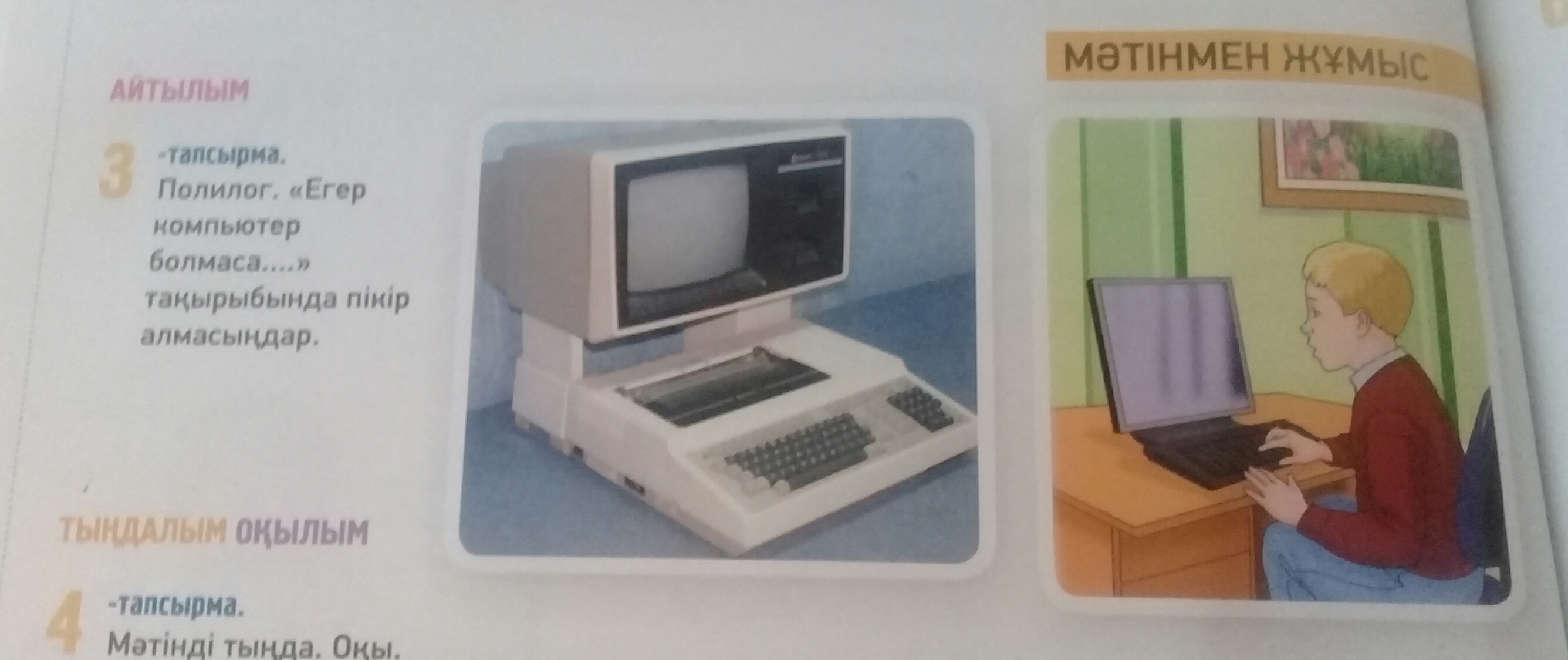 Егер компьютер болмаса, интернет желі де болмас еді, ал интернет желі болмаса, адамдар көп нәрсе біле алмас еді. Компьютердін жоқ болуынын өзіндік кемшіліктері де, жақсы жақтары да бар. Жақсы жақтары, ол: адамдар бір- біріне көп уақыт бөлер еді, бос уақыттары көбірек болар еді, кітап оқып, айналада болып жатқан нәрселерге көбірек коңіл бөлер еді. Ал кемшіліктері: адамдар керекті іс-қағаздарды принтер арқылы шығара алмас еді, видеоны сақтайтын жер болмас еді, айта берсе көп. Компьютердің бары да жақсы, жоқ болғаны да жақсы.