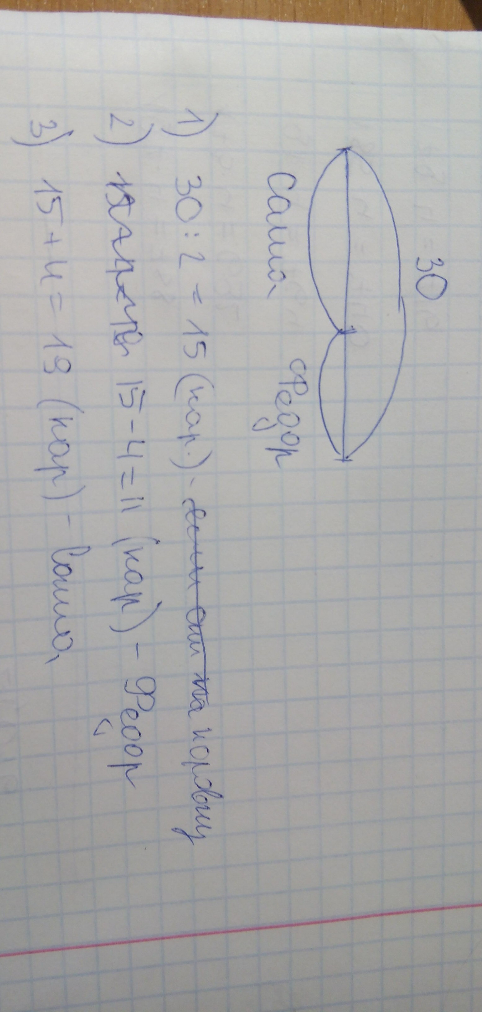 помогите пожалуйста решить задачи на рыбалке Федор поймал карасей в 4 раза меньше чем Саша сколько карасей поймал каждый мальчик если всего они поймали 30 карасей Помогите пожалуйста составить схему решение и условия