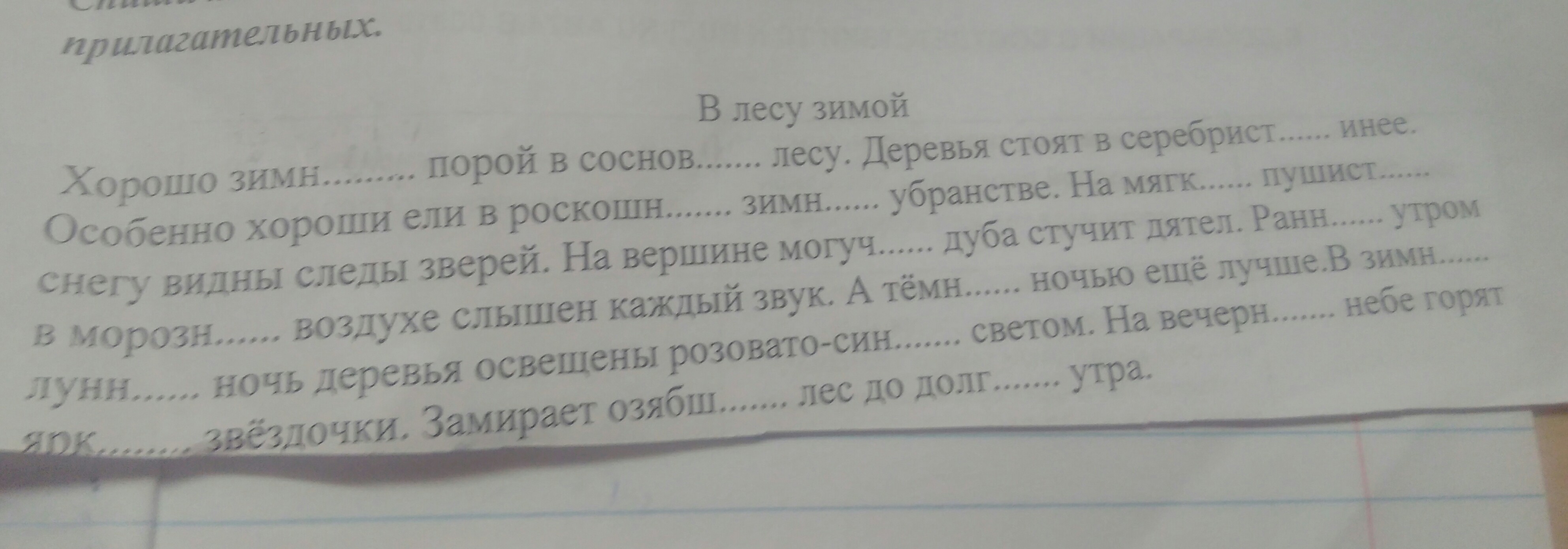 Зимнем,сосновом,серебристом,роскошком,зимнем,мягком,пушистом,могучего,ранним,морозном,тёмной,зимнюю ,лунную ,синим,вечернем,яркие,озябший ,долгого