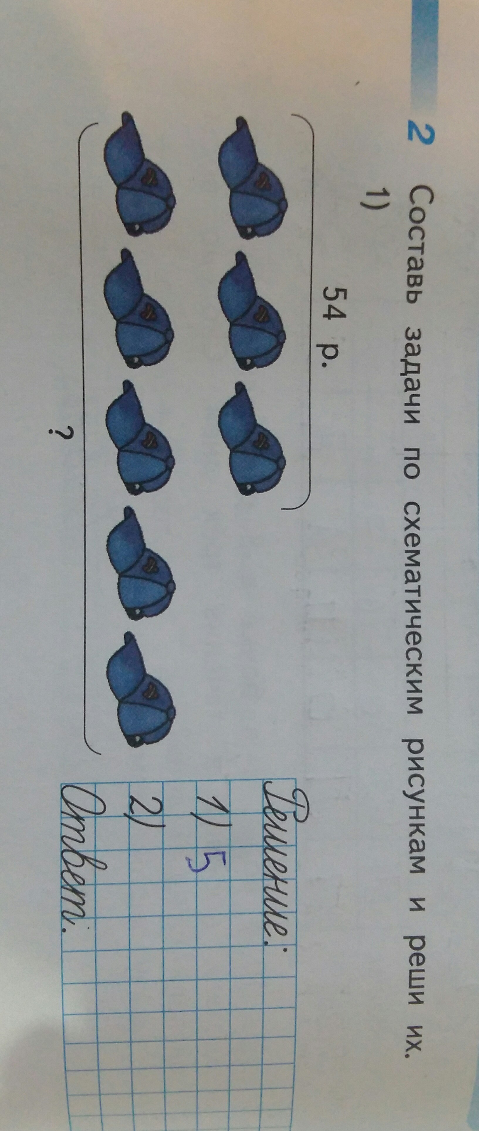 1) 54 : 3 = 17 ( р.) - стоит 1 кепка