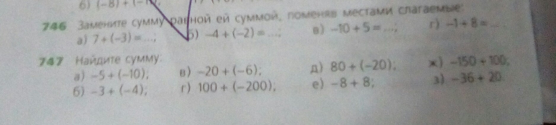 а) 7 + ( -3 ) = -3 + 7 = 4
