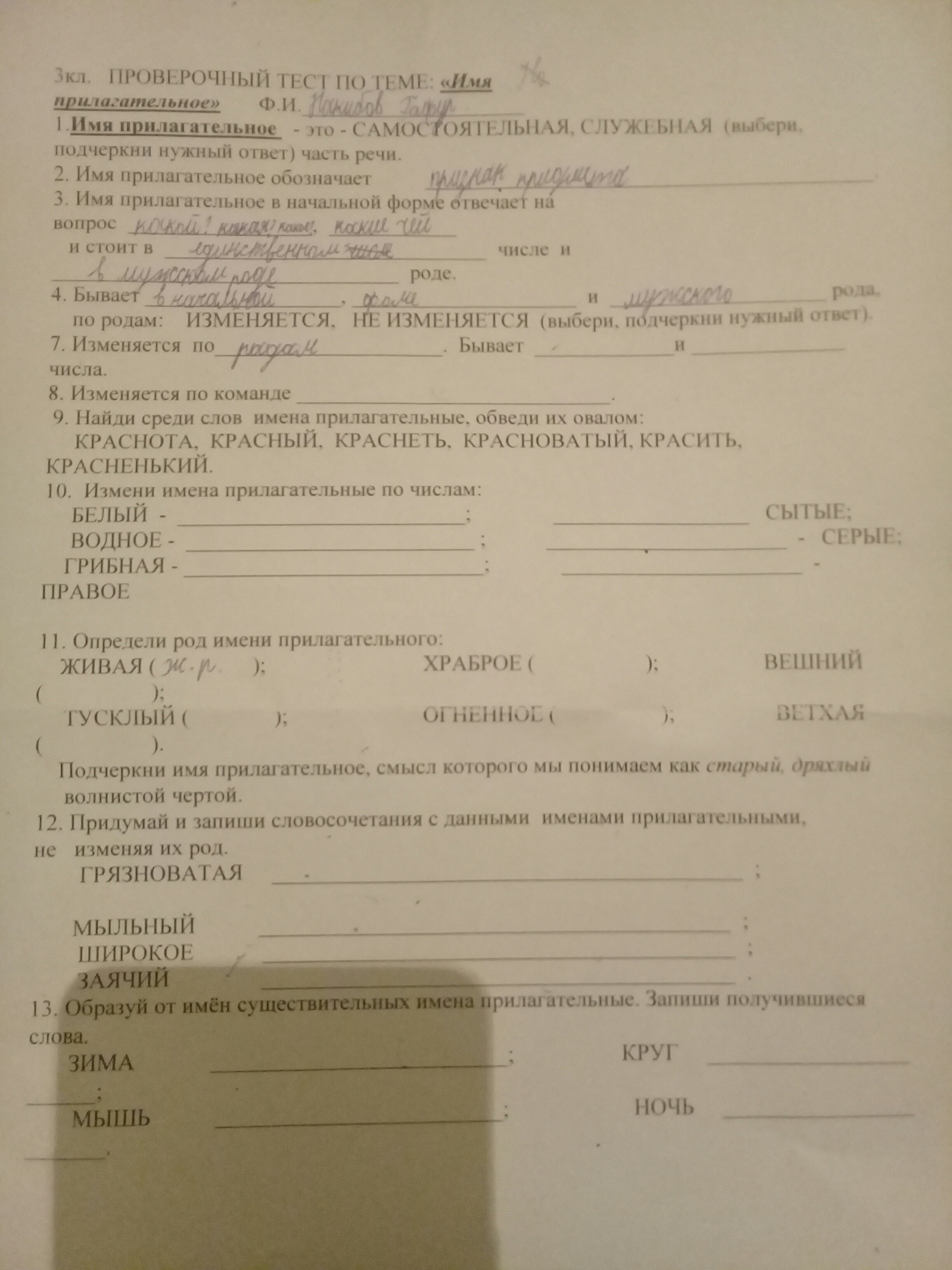 упр13) зима-зимний,мышь-мышинный, круг-круглый, нось-ночной.