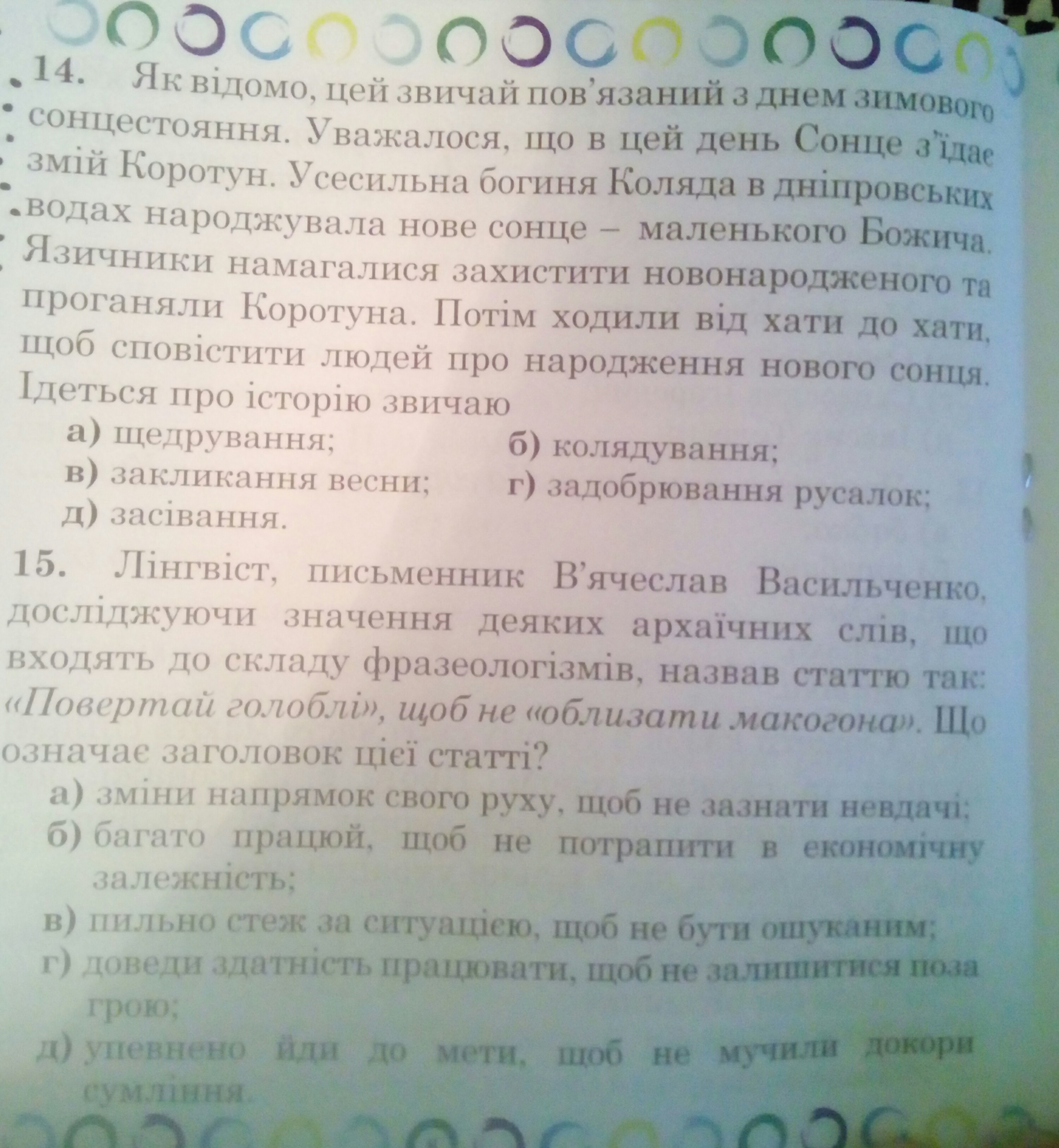 14.в) закликання весни 15.а)змінити напрямок свого руху щоб не зазнати невдачі