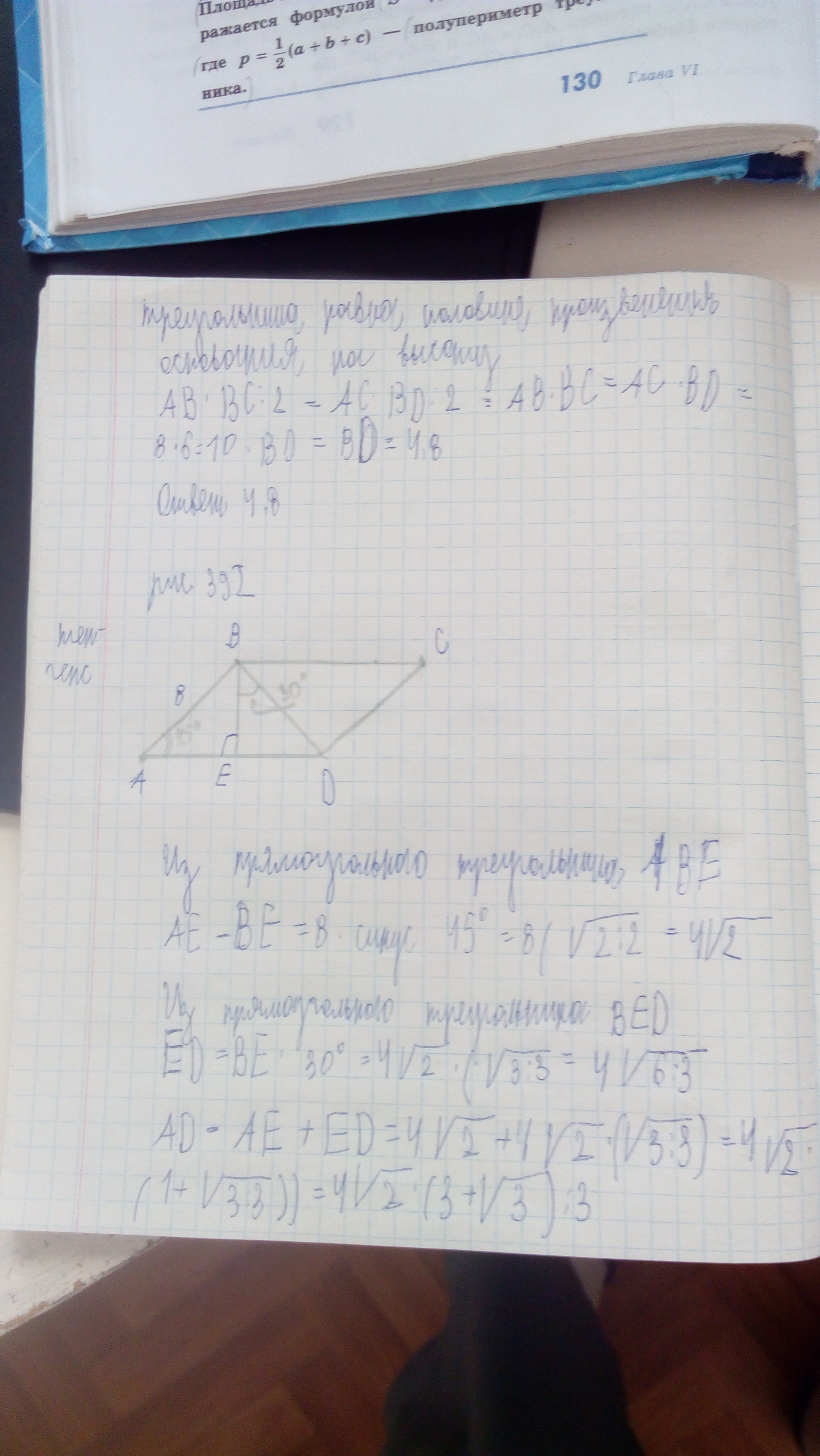 Рис. 392 ABCD - параллелограмм. Найдите: AD