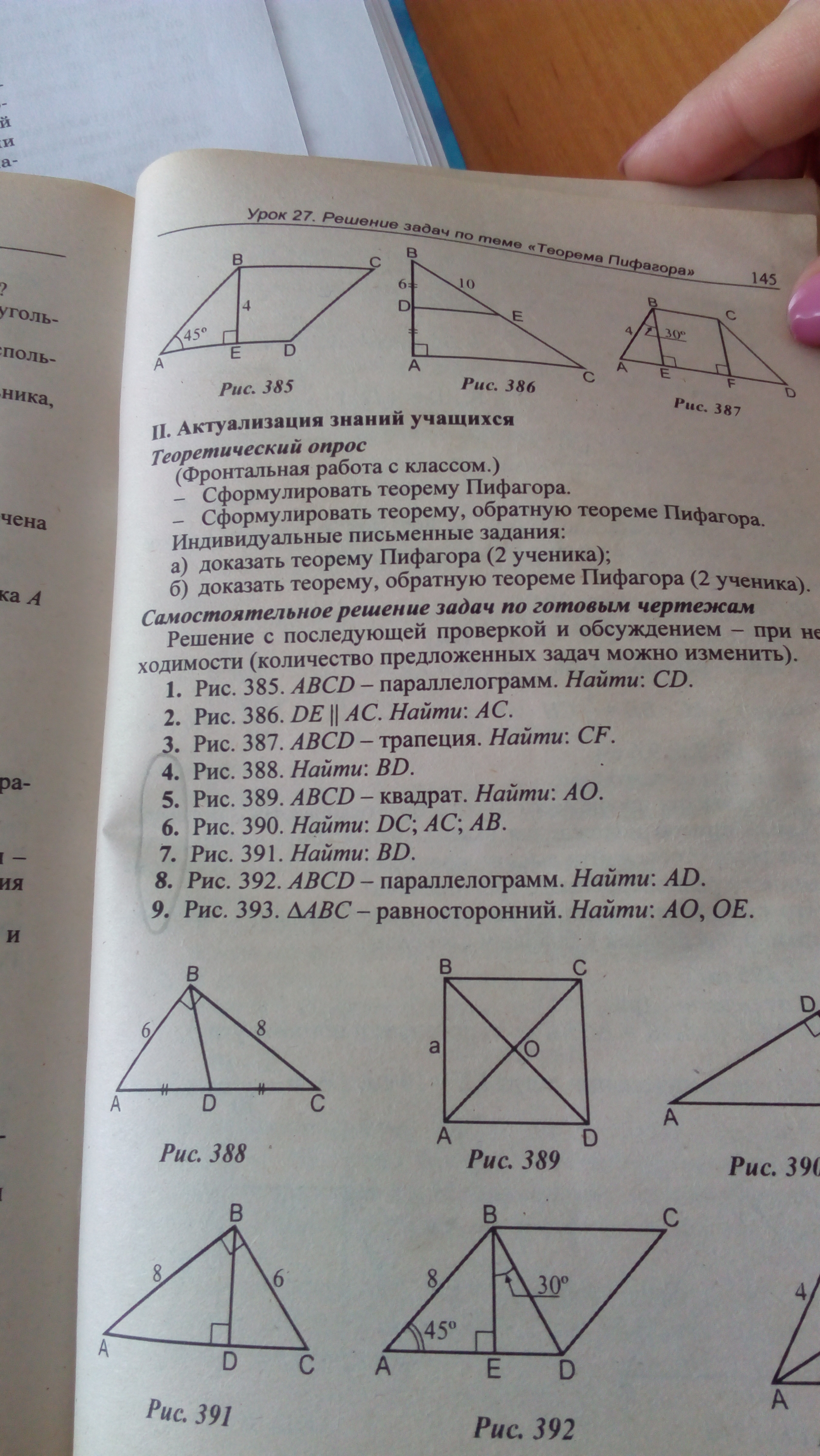 Рис 389 ABCD - квадрат. Найдите AO