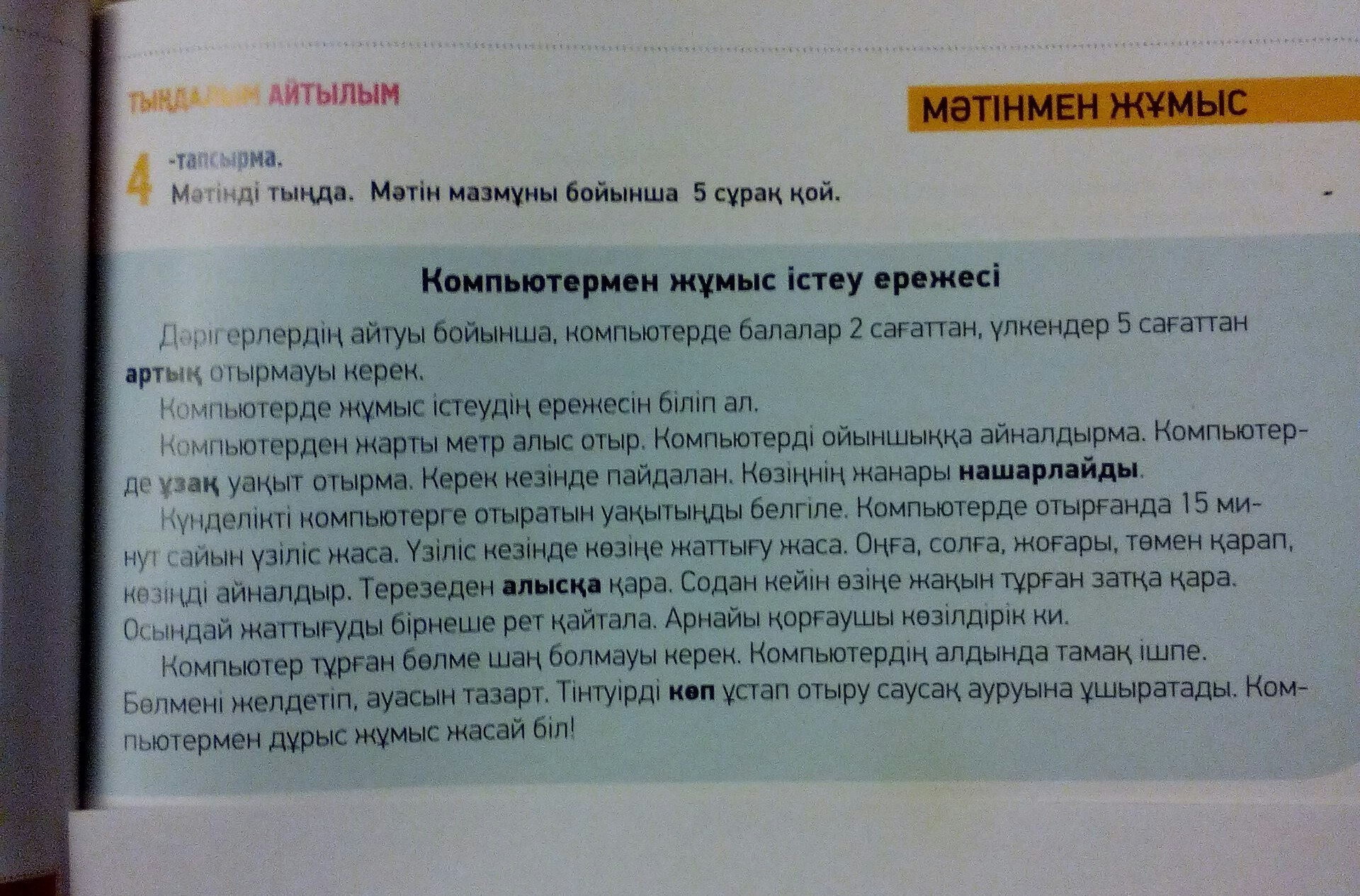 Компьютермен жұмыс истегенде неше сағаттан артық отырмау қажет?неліктен?