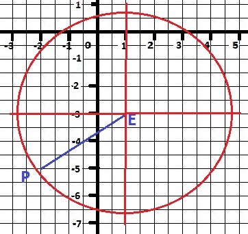 R² = (Px-Ex)² + (Py-Ey)² = 3²+2² = 9+4 = 13