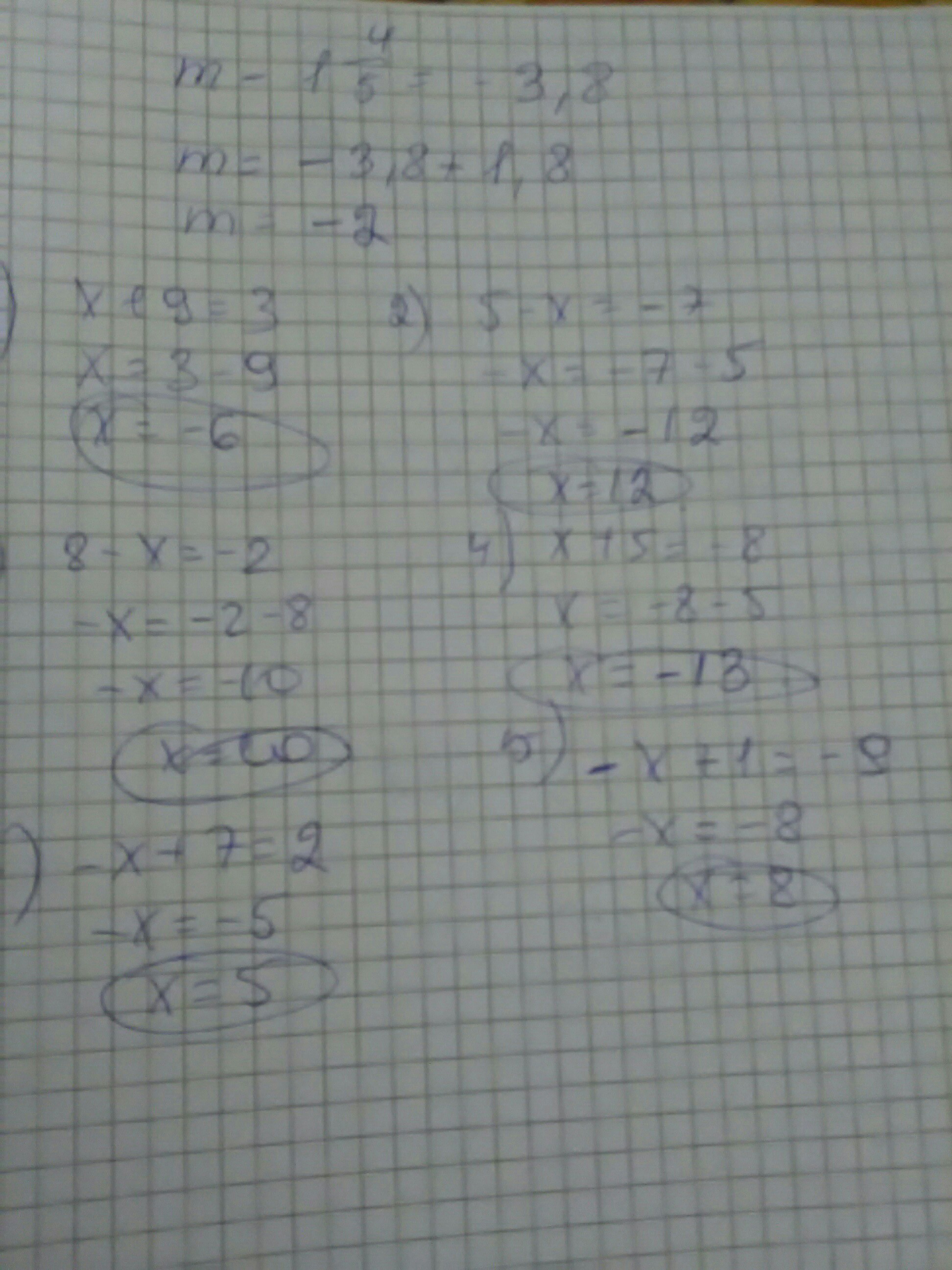 г) х - (-5) = -8;