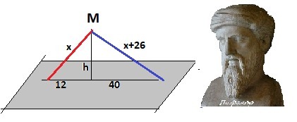 2) h² + 40² = (x+26)² = x² + 52*x + 26²