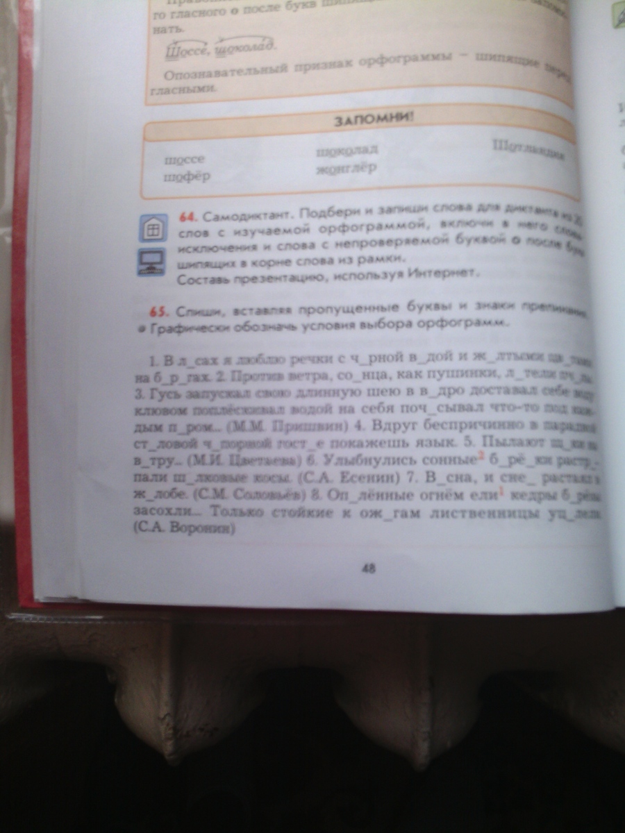 В лесах я люблю речки с чёрной водой и жёлтыми цветами на берегах. Против ветра, солнца, как пушинки летели (не видно слова). Гусь запускал свою длинную шею в ведро, доставал себе воду клювом, подплёскивал водой на себя, почёсывал что-то под каждым пером. Пылают щёки на ветру. Улыбнулись сонные берёзки, растрепали шёлковые косы. Весна, и снег растаял в желобе. Опалённые огнём ели, кедры, берёзы засохли. Только стойкие к ожогам лиственницы уцелели.