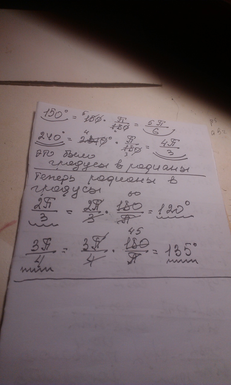 Подскажите пожалуйста как перевести градусы в пи, и наоборот
