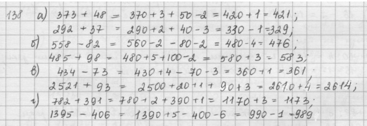 а) 373 + 48 б) 558 - 82 в) 434 - 73 г) 782 + 391