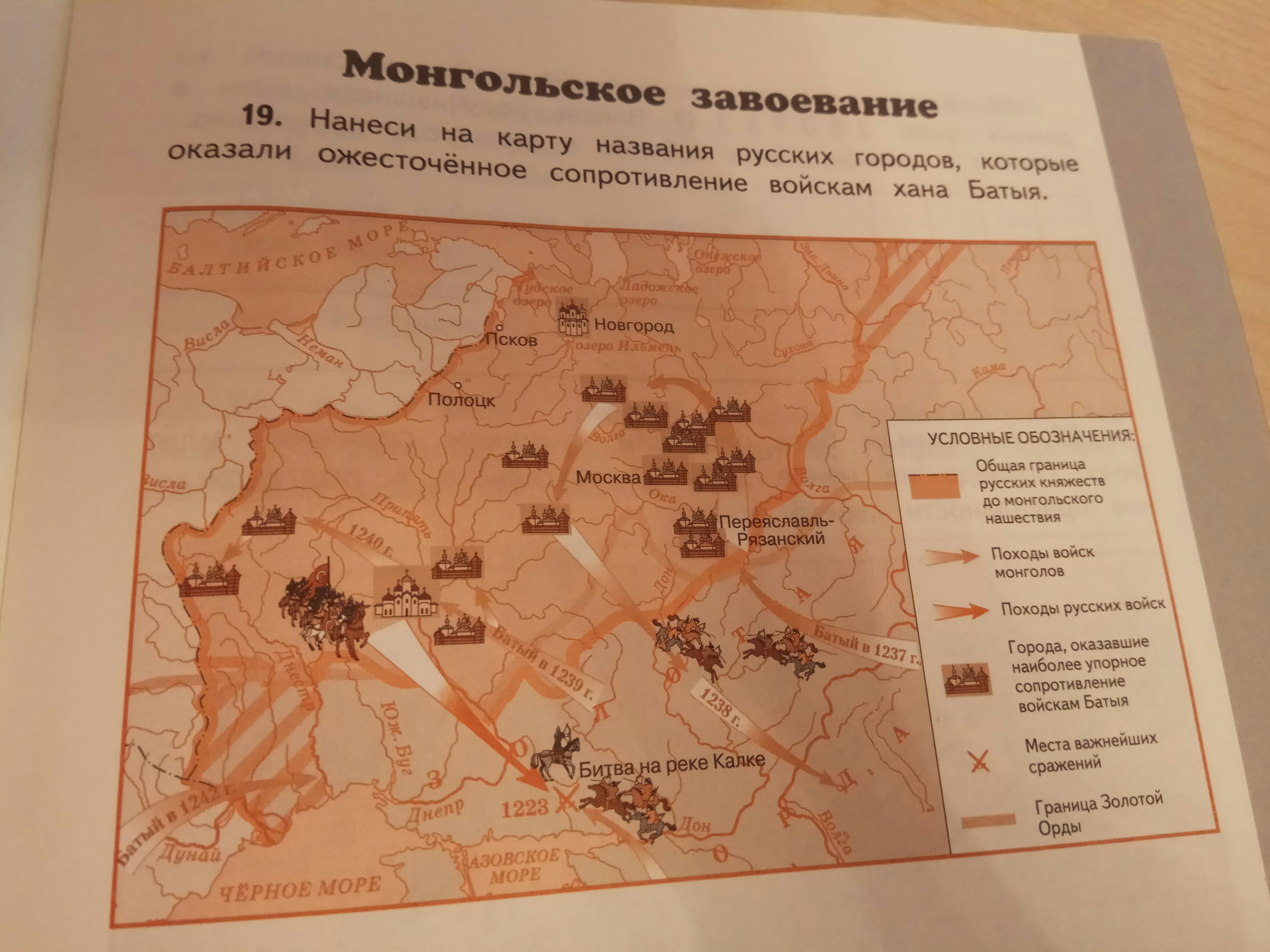 нанеси на карту Названия русских городов которые оказали ожесточенное сопротивление войскам хана Батыя
