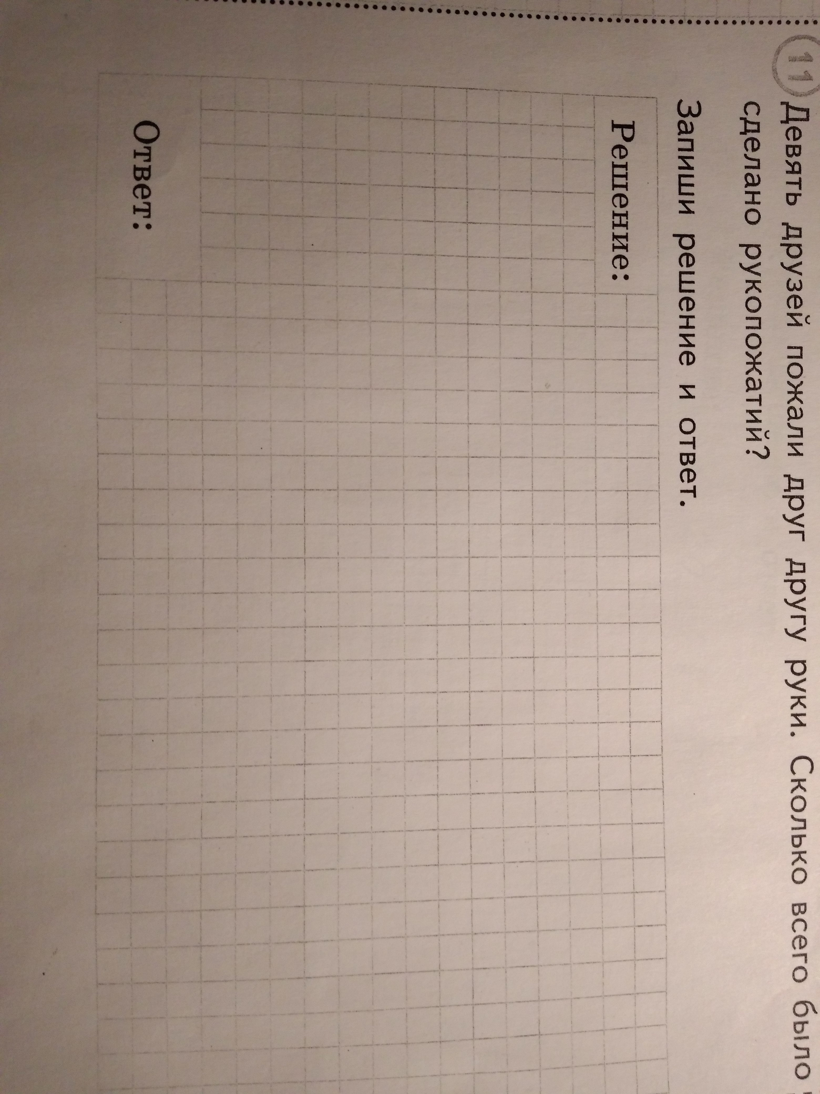 9*(9-1)/2=36 каждый жмет руку другому, но не свою
