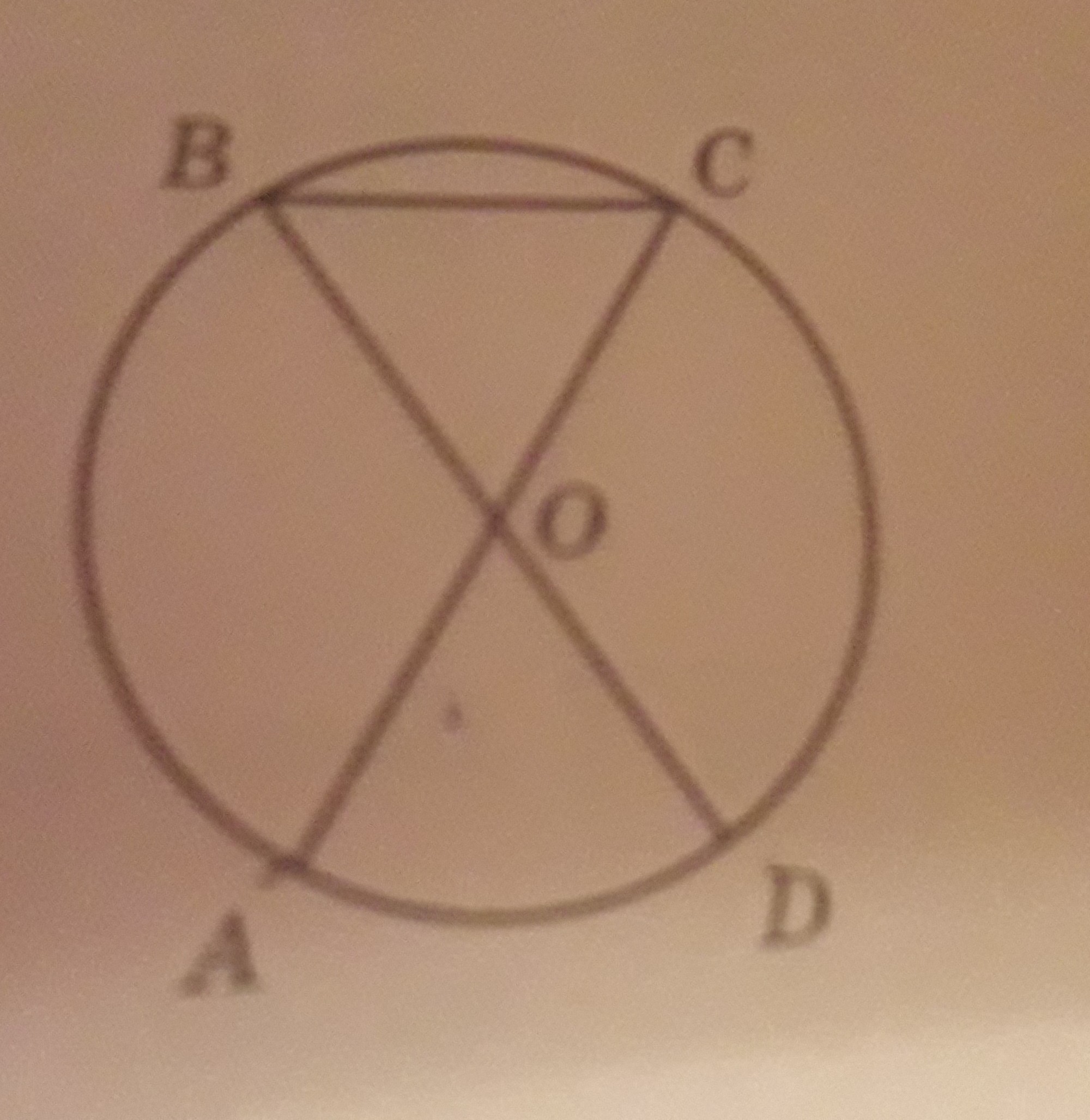 в окружности с центром O отрезки AC и AB - диаметры. Угол AOD равен 50 градусам.Найдите угол ACB.