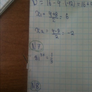 получили уравнение: 3^(12x) = 3^(-1) ---основания степеней равны, сами степени равны, значит и показатели степеней равны...