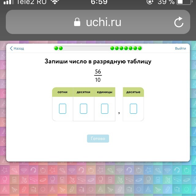 0 сотен, 0 десятков, 5 единиц, 6 десятых