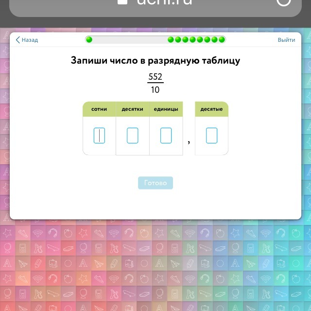 в сотнях ничего, в десятках-5, в сотнях-5, в десятых-2.