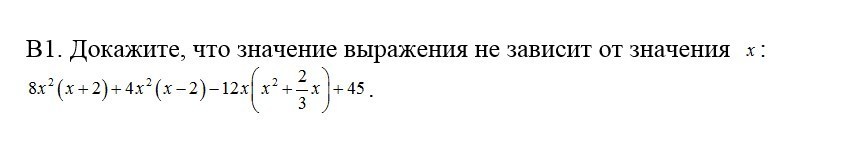 8x²*(x+2)+4x²*(x-2)-12x*(x²+(2/3)*x+45=8x³+8x²+4x³-4x²-12x³-4x²+45=45.