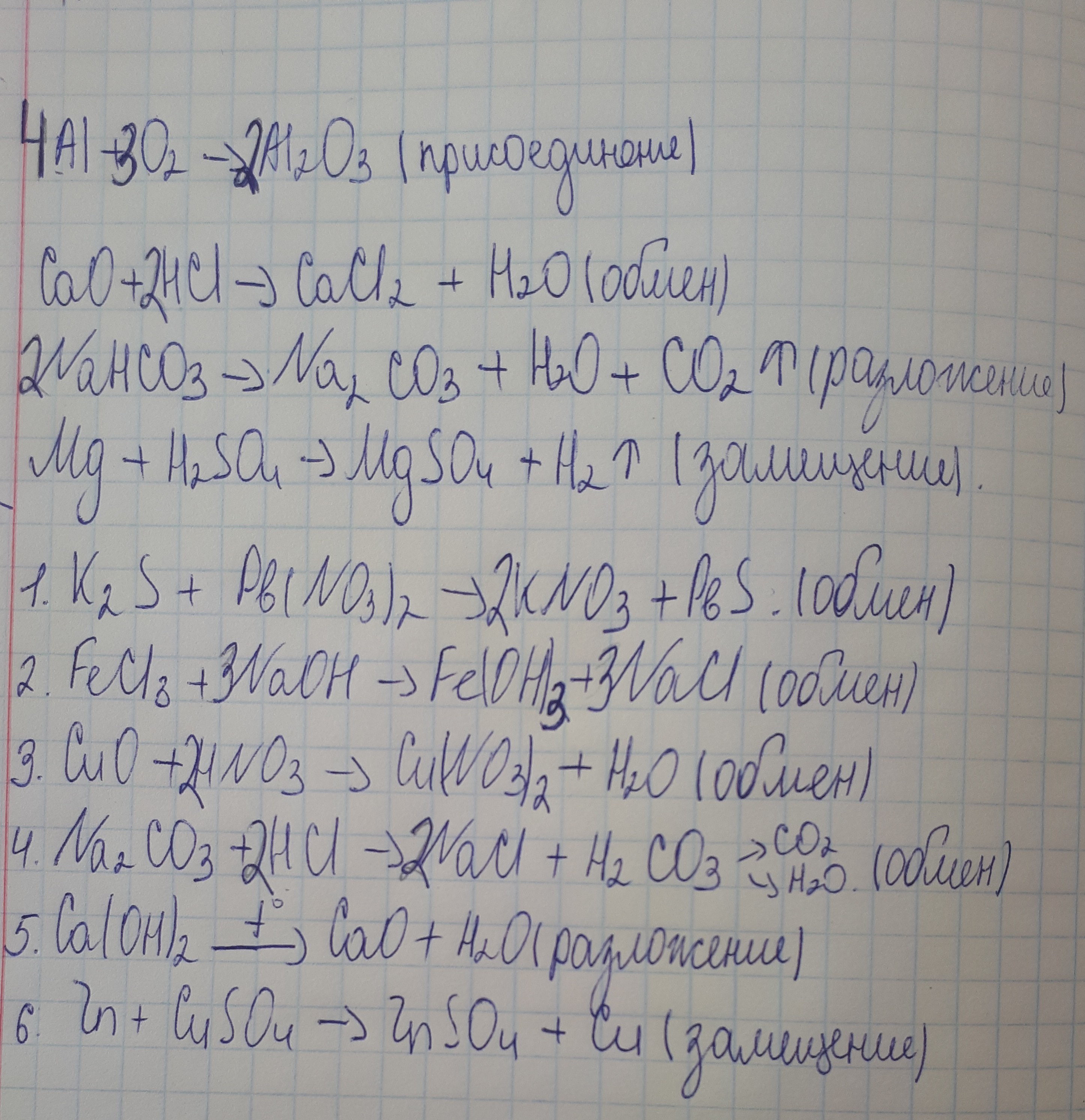 2. Проставьте коэффициенты в следующих схемах реакции, определите к какому типу относиться каждая из них: