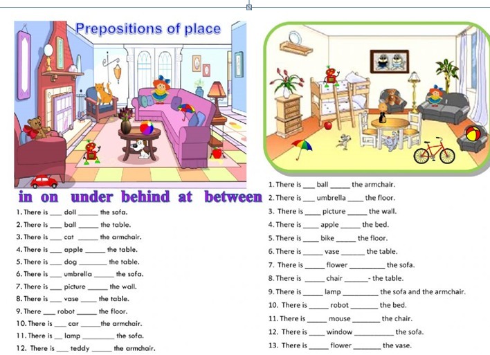 а 13 ? а как их расставлять в предложениях ?There is a doll the sofa вот так писать ?