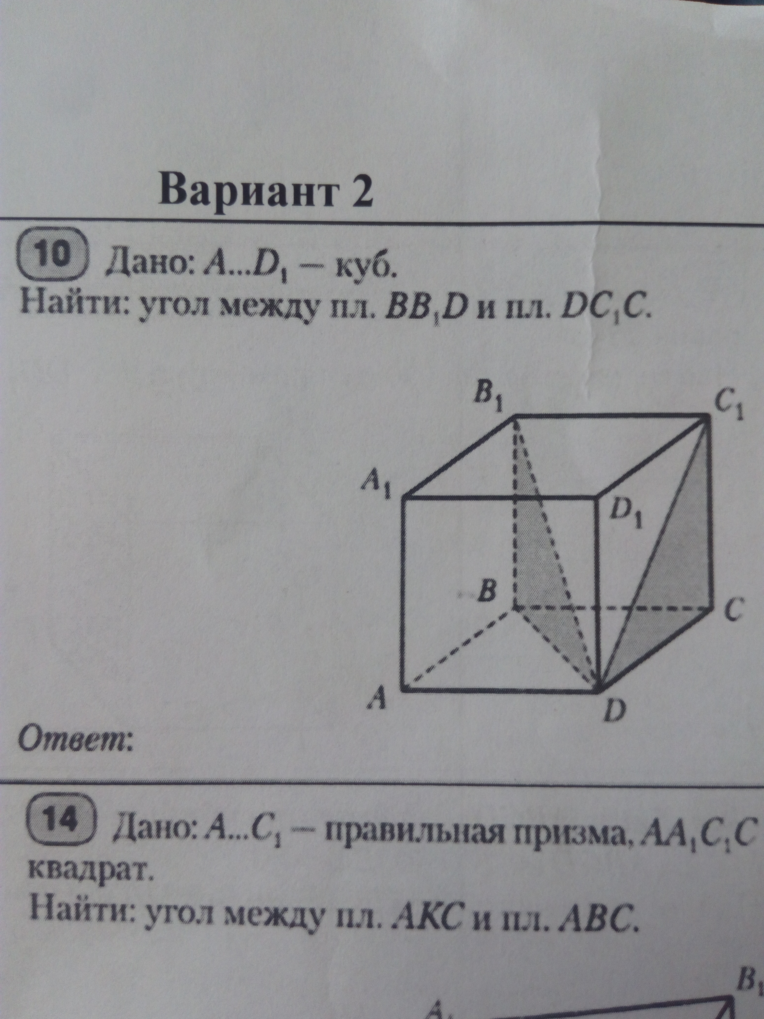 Найти : Угол между пл.BB1D и пл.DC1C