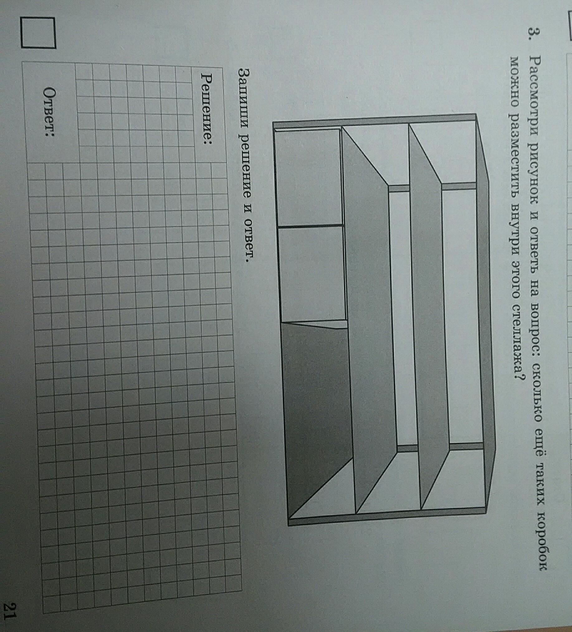 если 2 коробки это половина то на одной полки можно разместить 4 коробки и мы 4 умножим на 3 =12 и из 12 вычтем 2 потому что две коробки уже стоят ответ 10