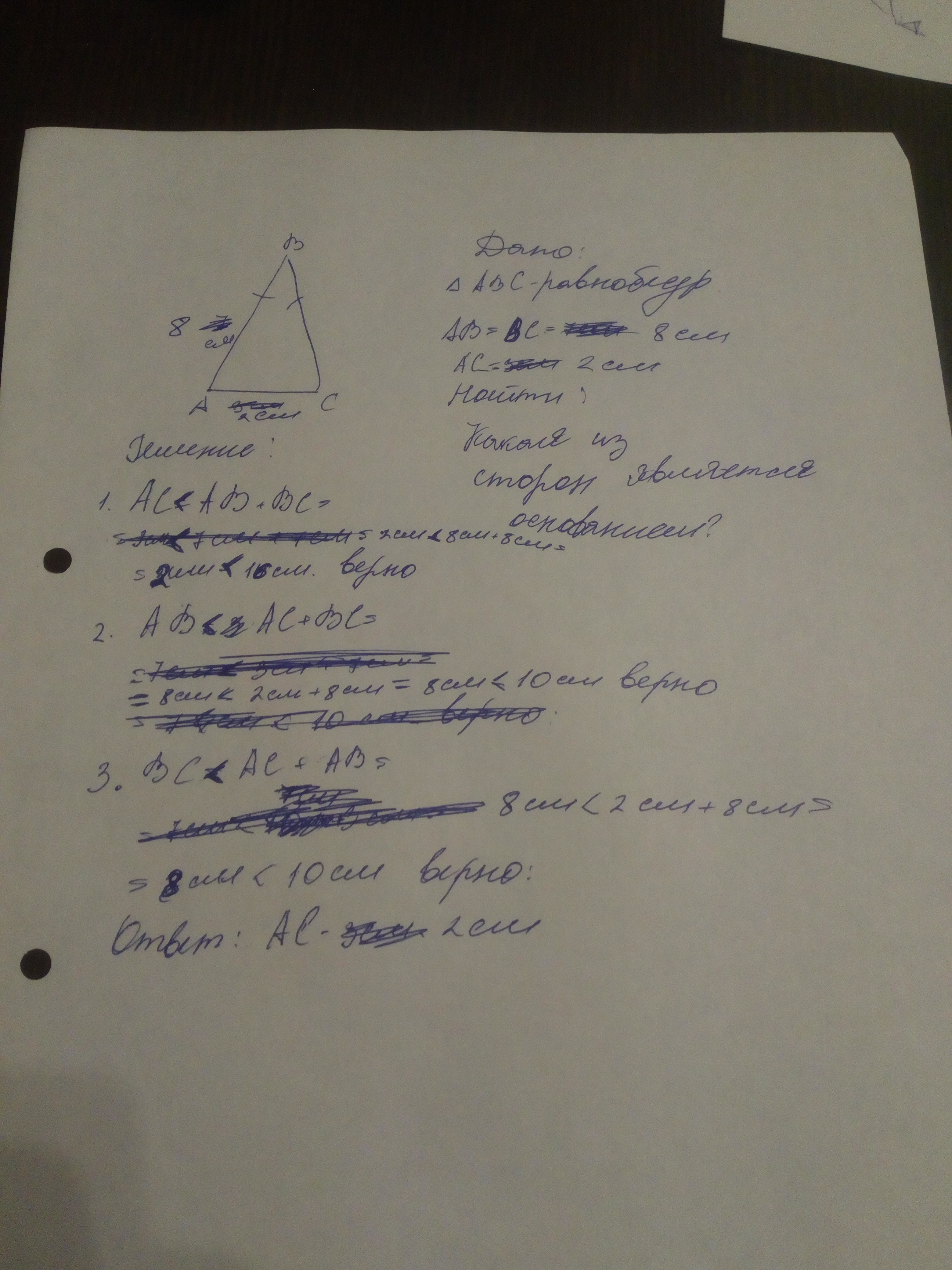 вопрос звучит не "какая из сторон является основанием", а найти третью сторону, если две другие 8 и 2. Исправьте