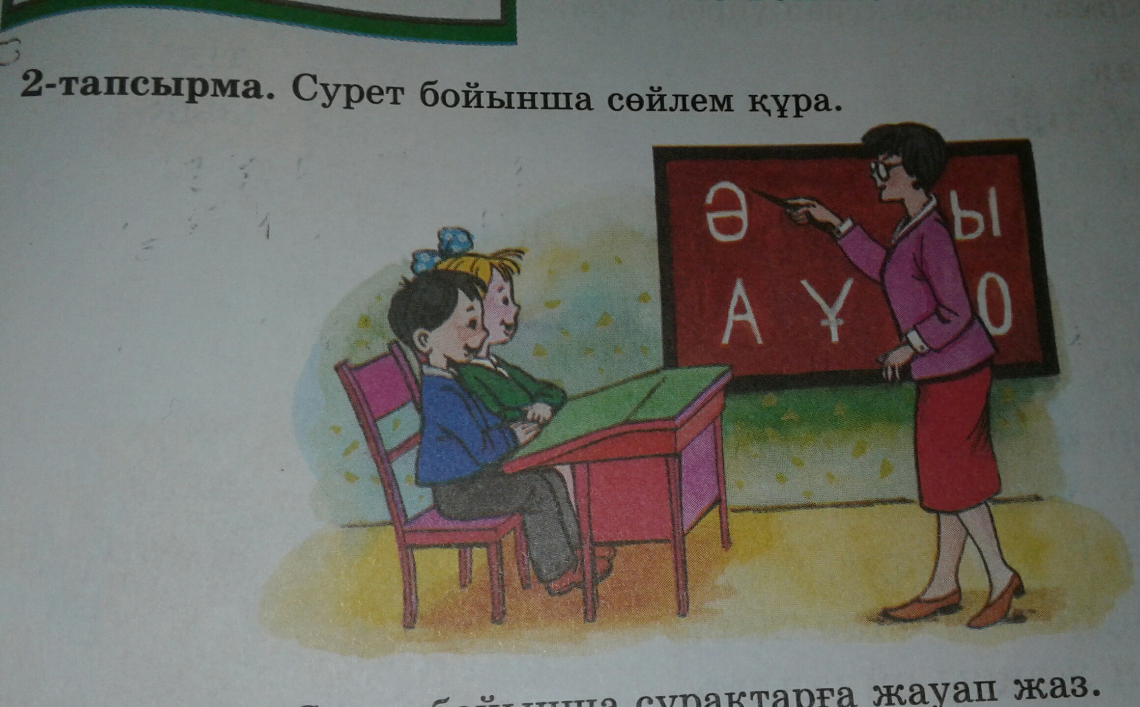 1 қыркүйек болды. Біз сыныпқа кірдім, мұғалім бізге алфавит түсіндірді, үстелде көршім бар еді, біз бірге тіл үйрендік.
