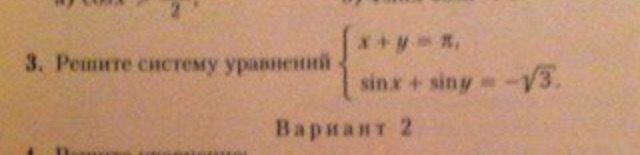 х = π-у = π -(-1)^(n+1) π/3 - nπ, n ∈Z