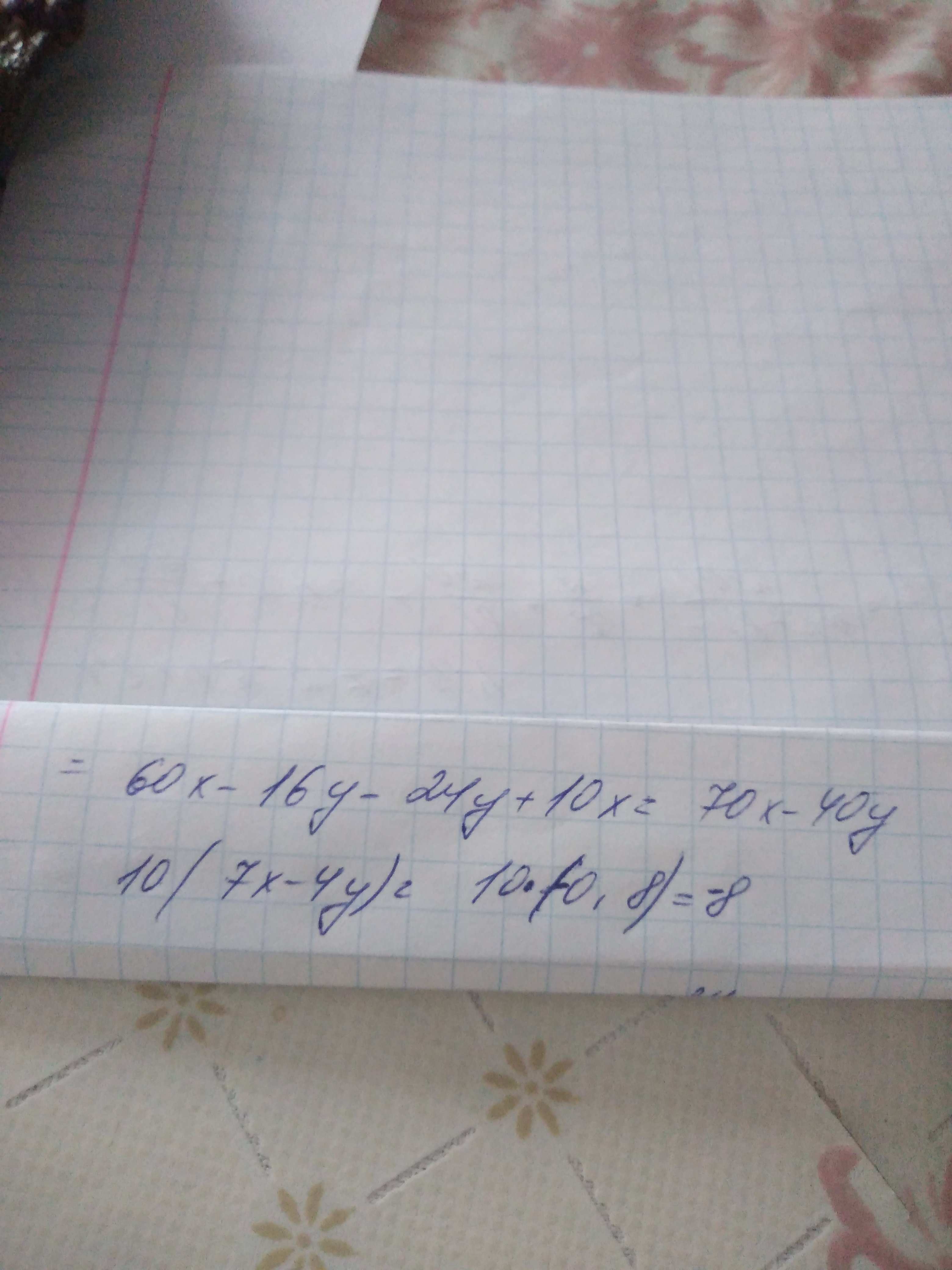 -10(4y-7x) = -10 * 0,8 = -8
