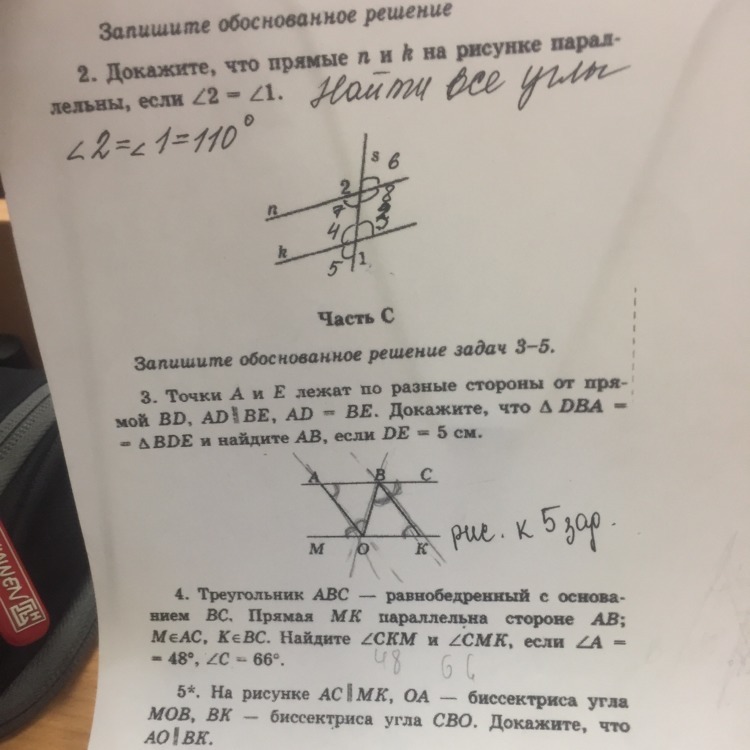Так как МК параллельна АВ=> угол СМК= углу А=48°, а угол СКМ=углу В=66°