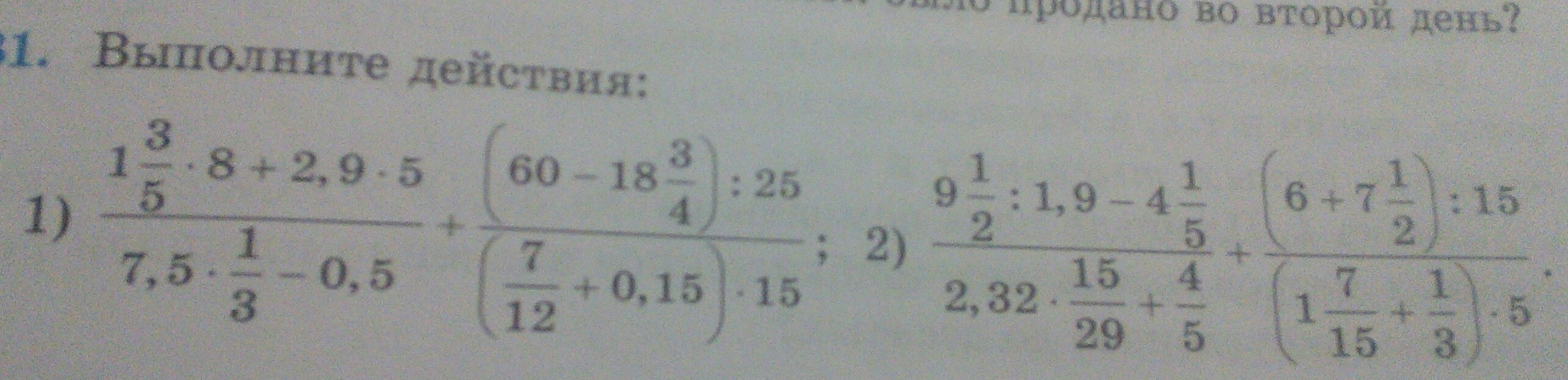Сначала переводите все дроби под и над общими дробными чертами в неправильные, а затем выполняете действия в скобках, и так над каждой и под каждой общей дробной чертой, общее дробное деление должно быть произведено перед общим сложением(1)