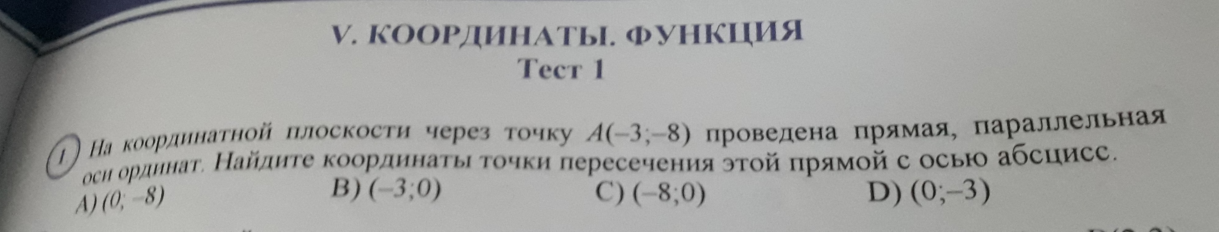 прямая параллельная оси ординат параллельна оси Х, значит Х=0 - пересекает ось абцисс( ось У) в точке (0;-8), где Х=0, У=-8