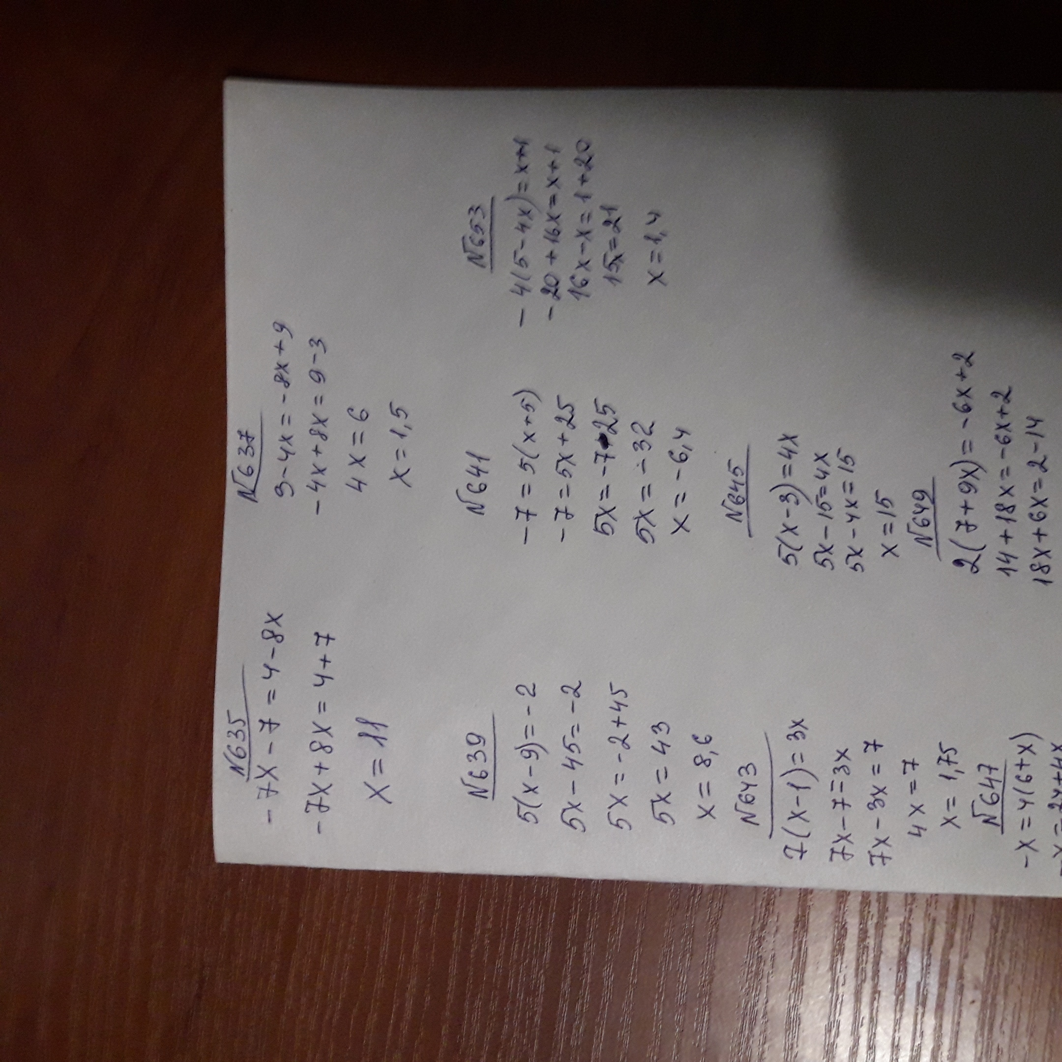 номер 637 ответ 1 целая 1/2 а не 2/3 , подставь полученный ответ в икс , должно выполнится равенство например 2=2
