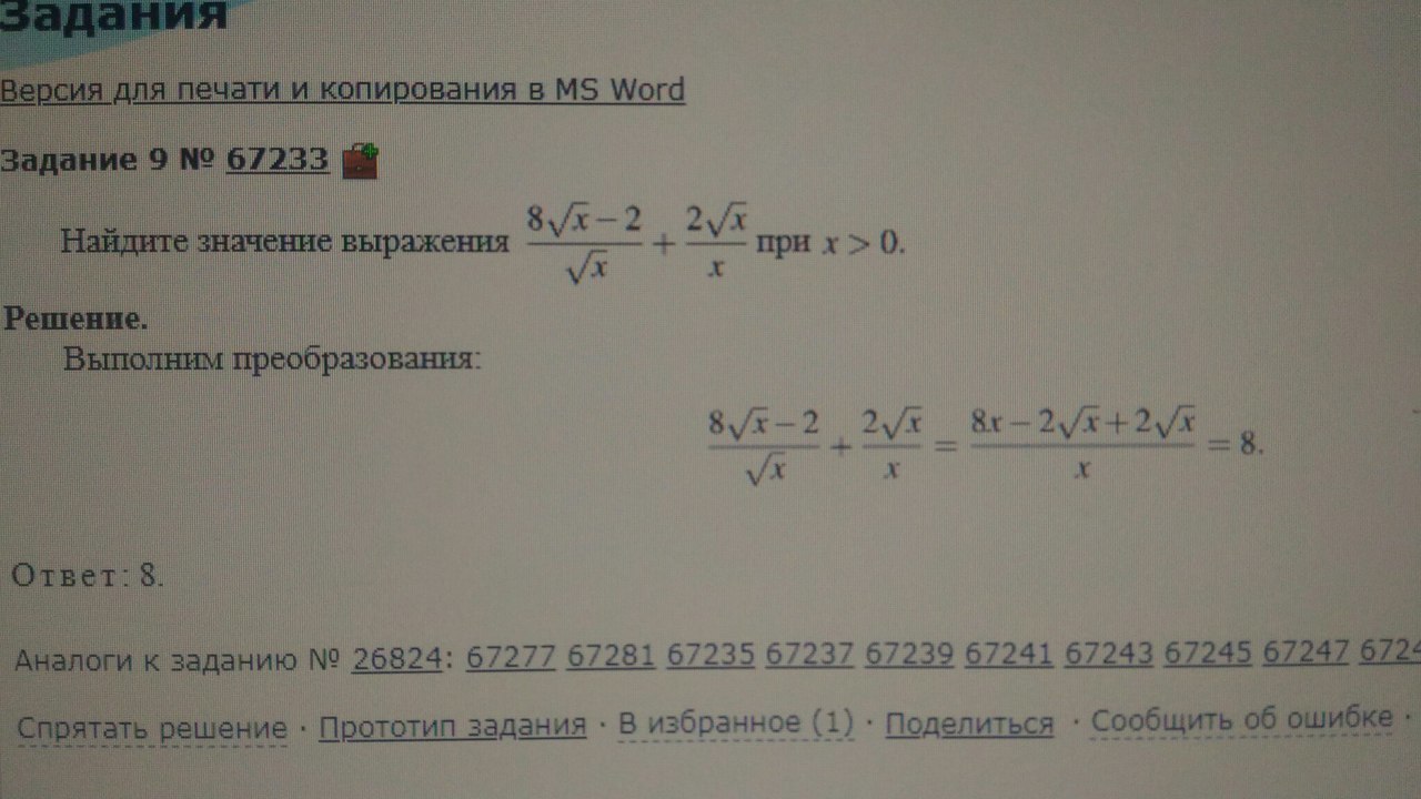 Не понял решение примера frac{8 sqrt{x} -2}{ sqrt{x} } +  frac{2 sqrt{x} }{x}